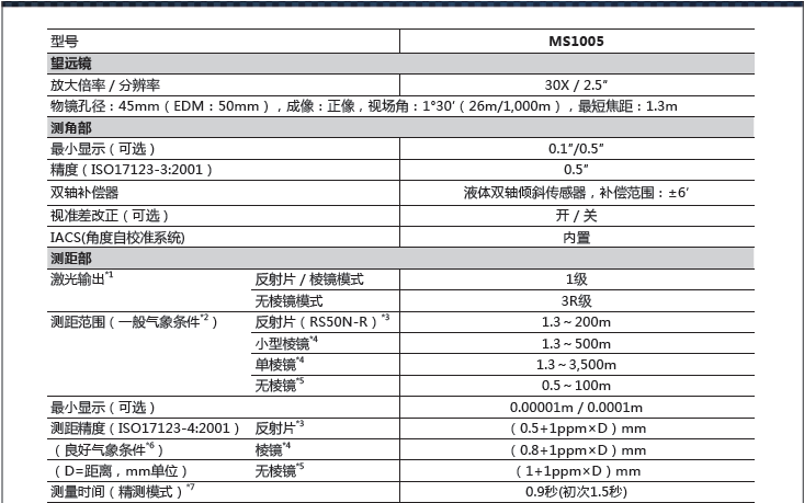 MS1005 應(yīng)用自主角度校正系統(tǒng)(IACS)融合編碼度盤技術(shù)和數(shù)字處理技術(shù),使得MS1005 實(shí)現(xiàn)了0.5″的測(cè)角精度。