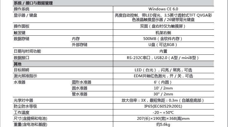 符合《測(cè)繪資質(zhì)分級(jí)標(biāo)準(zhǔn)規(guī)定(2014版)》中“大地測(cè)量”及“工程測(cè)量”甲級(jí)認(rèn)證標(biāo)準(zhǔn)對(duì)高精度全站儀的要求。